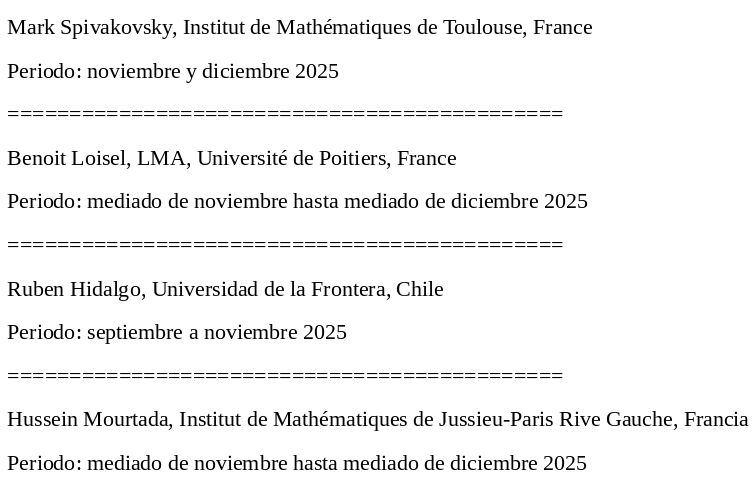Lugar: Sala de Magíster (sala norte), primer piso del Instituto de Matemáticas.