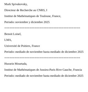 Benoit Rittaud,Sorbonne Paris Nord University, France.Periodo: marzo 2026. Mark Spivakovsky,Directeur de Recherche au CNRS, Institut de Mathématiques de Toulouse, France.Periodo: noviembre a diciembre 2025. Benoit
